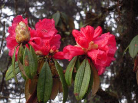 Sikkim is a very popular destination of mountain lovers for a long time. Sikkim Himalayas has lot to offer to the mountaineers, trekkers as well as travelers. Barshe is such a place where you can get a good exposure of very echo friendly mountain atmosphere among jungle of rhododendrons - of many colours and sizes. On 15th of April, 2009 we started for Barse. We availed Kanchankanya Express and reached New Jalpaiguri station next morning at 7.15 A.M. Shuttle autos will take you to SNT bus stand at the cost of Rs.10/- per head. Here you can try for SNT buses for Jorthang. But we preferred share jeep. It left Siliguri at 8.30 P.M. Journey to Jorthang is a nice one through the green hills. Some remote villages will greet you enroute. Jorthang is 82 km from Siliguri. It is a big business place now. From Jorthang share jeeps are available for Sombareya, which is only 29 k.m away. It took almost 2 hours to reach Somberya. Rammam River will accompany you throughout the journey. The place is little bit cold as we gained reasonable altitude. At Somberya we had our lunch with smoking delicious vegetable momos. Here we had to hire one car as regular jeep service is not available. Sombareya to Hilley is 30 km and it took more than one hour to reach Hilley at 3.40 P.M. Road to Hilley is partly metal. It was a fogy atmosphere at Hilley. Here you have to register your name with the SSB camp. (Sasastra Seema Bal). After taking hot tea at a shop we started our journey on foot to Barshey. You need permission to enter the sanctuary. You have to pay for your cameras also. Any movie camera will cost you Rs.500/- per day. There is a museum also at the entrance of the sanctuary. One must pay a visit to this museum. The path goes through the lush green jungle. Some bamboo trees are there which is very popular spot for the bears. This jungle is shelter of bears, leopards, and red pandas. Some flex posters of leopard, bear and pandas were displayed on the road side trees. But it is not easy to see animals in such forests and we were also not exceptions. Only 4 km walks and you are in the heaven. A nice cottage Guras Kunj will welcome you. It is a nice place to spend few days in the wild far from madding crowd. The place is surrounded by rhododendron trees and other alpine trees. Nice mountain ranges are seen from here though we were not so lucky. The rate is Rs.700/- + 10% tax per day per head for dormitory. It includes breakfast, lunch, dinner and refreshment. There is a nicely decorated dinning hall at the ground floor. Candlelight dinner is certainly a life time experience. Next morning we walked to the nearby view point. There are some wooden benches on the top of the view point. Nice place to relax for some time. Panoramic view is magnificent. Singalila range is clearly visible from here if the weather is clear. The valley below is a riot of colours among greens. Various colours of rhododendrons will recuperate your eyes. We came down from the viewpoint after spending almost one hour. Our lunch was ready by then. We preferred to have it out in the open and enjoyed it very much. We bade good bye to Barshe and started for our return journey. Note:-