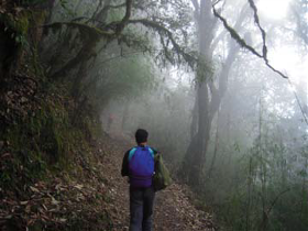 Part-II. Hilley- Ribdi Rammam Srikhola Rimbik People who will be able to spare four more days can easily enjoy this route which is really thrilling. Take right turn downwards from Hilley. The path goes through the fields and bushes. Though taking the help of guide is not necessary, better ask local people about the path whenever you meet someone enroute. This downward road will take you to the metal road to Ribdi. This path goes through some picturesque villages which will greet you with traditional Sikkimese culture and environment. After reaching the metal road it is hardly one hour walk to reach Ribdi. It is a bus head village with primary school, health centre, one monastery other side of the hill but no hotel. You will get rooms at some private residences, which is limited in numbers. You will get the food also there. You will reach Ribdi from Hilley in about two and half hours. Have an afternoon stroll around the village and pay a visit to the monastery where classes starts at 4.00 A.M. Next day get ready as early as possible and have your breakfast. Todays path goes to Gorke. First few kilometer road is jeepable. And then the rest is definitely walkable. This path goes downwards through greeneries and shaded by big trees. Typical villages are visible from the roads. After almost two hours walk your will reach a field. There is a small footbridge over a stream. You cross the bridge and will find the forest check post, this is West Bengal greeting you. A narrow stone covered path goes upward and then after some ups and downs you will find a tea and food stall. You can take a break here with hot tea and snacks. Now comes Samandeen on the top of the hill which is a beautiful village with plenty of vegetation, trees, few tiny buildings and a rest house with few rooms. From Samandeen the road goes downwards through dense forest. If you are lucky you may come across red pandas also. Sometimes path goes upwards and sometimes downwards. At around 2.00 P.M you will reach Rammam. There is a school, monastery and yes hotel is there. You can spend the night in this cozy hotel room. Next destination is Srikhola. Path goes through hilly ups and downs as usual but with changing moods and landscapes. Rammam to Srikhola is downward path through the trees. After walking one hour or more Srikhola village will be seen on the side of the river. Go straight down to the riverbed and you will reach Srikhola. Crossing the bridge towards Rimbik you will find Hotel Shovraj by the side of the road. This hotel is run by a couple along with a primary school. You can spend one or two days here. If you are lucky, you may get Trout fish preparation at dinner/lunch. You can walk to Rimbik from Srikhola or can hire jeep through the owner of the hotel. The young man is very much helpful to tourists. Rimbik is connected with Darjeeling share jeeps. It is your choice how you will go to Darjeeling, but sure you will have a memorable tour with you when you will be back to your usual routine life.